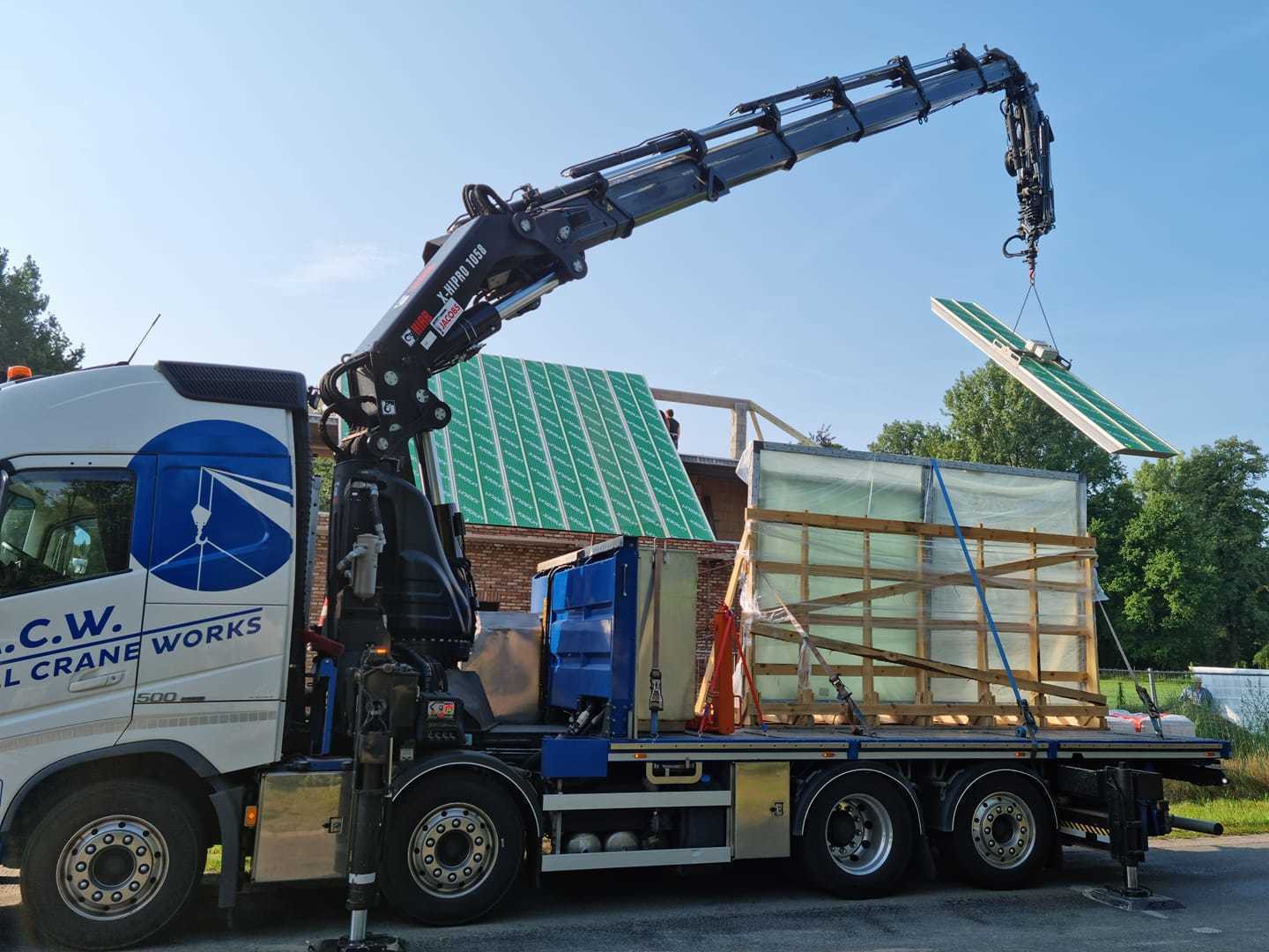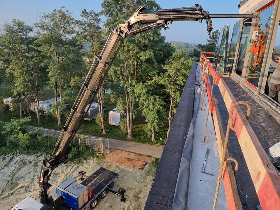 Dankzij een kraan met een totale lengte tot 36 meter kunnen glaspartijen probleemloos geplaatst worden in woningen, appartementen en bij industriebouw. Qua gewicht kan het gaan tot 1.500 kg in diverse afmetingen. Alles wordt eerst tot in detail voorbereid, zodat de plaatsing vlot en correct verloopt.