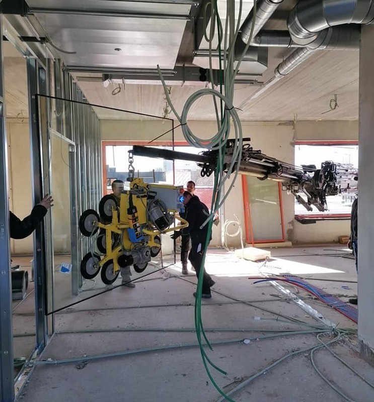 Plaatsing van zware glaspartijen is mogelijk tot 1.500 kg in verschillende afmetingen, met controle en precisie.