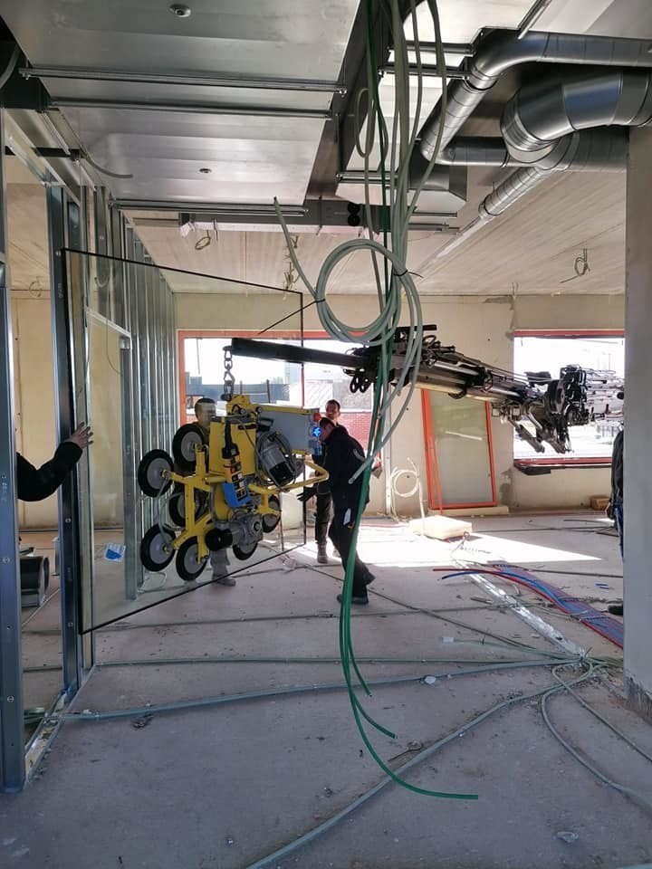 Ideaal voor plaatsen waar manueel tillen of standaard hijsmiddelen niet volstaan. Wij plaatsen glas veilig op hoogte en in beperkte doorgangen.