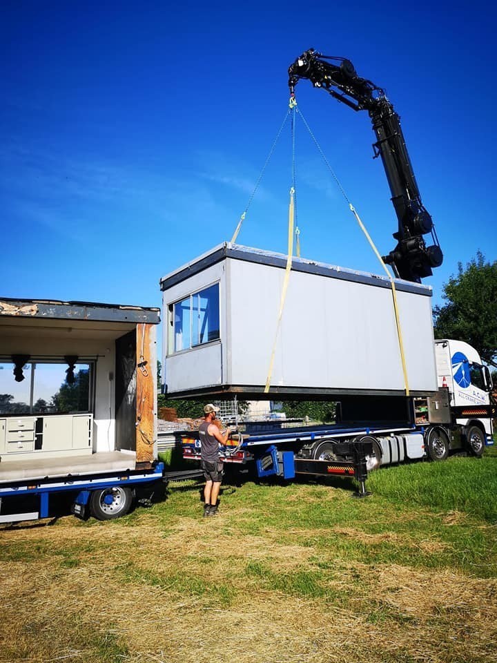 Transport en plaatsing van units en containers op de werf, met gecontroleerde positionering en duidelijke afspraken.