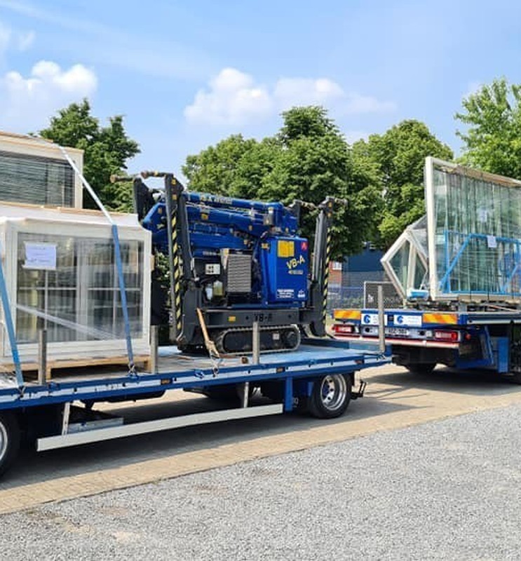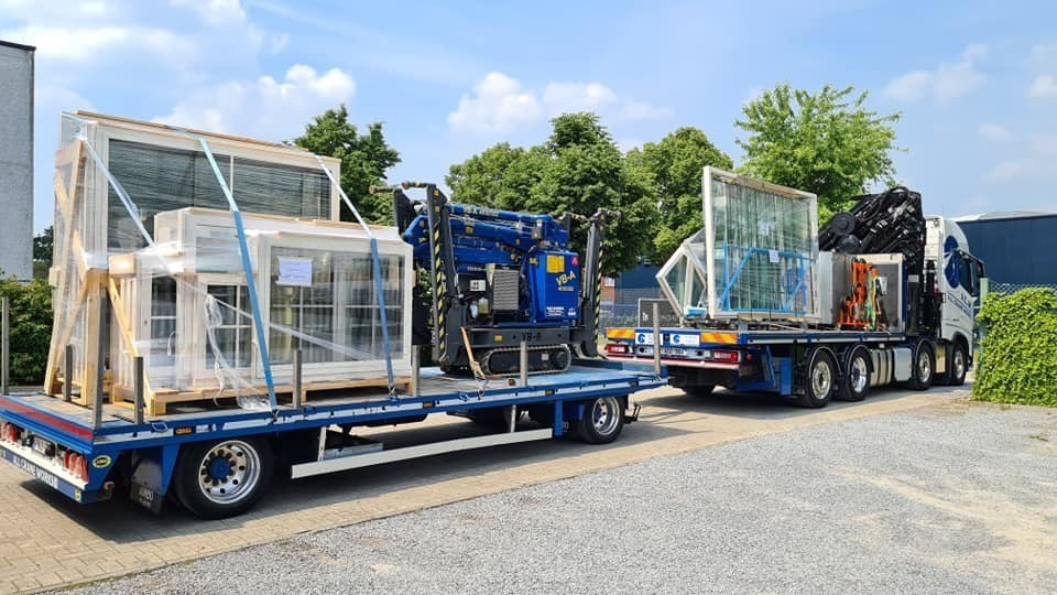 Ook ramen en glaspartijen kunnen veilig getransporteerd en geplaatst worden, met oog voor precisie en werfveiligheid.